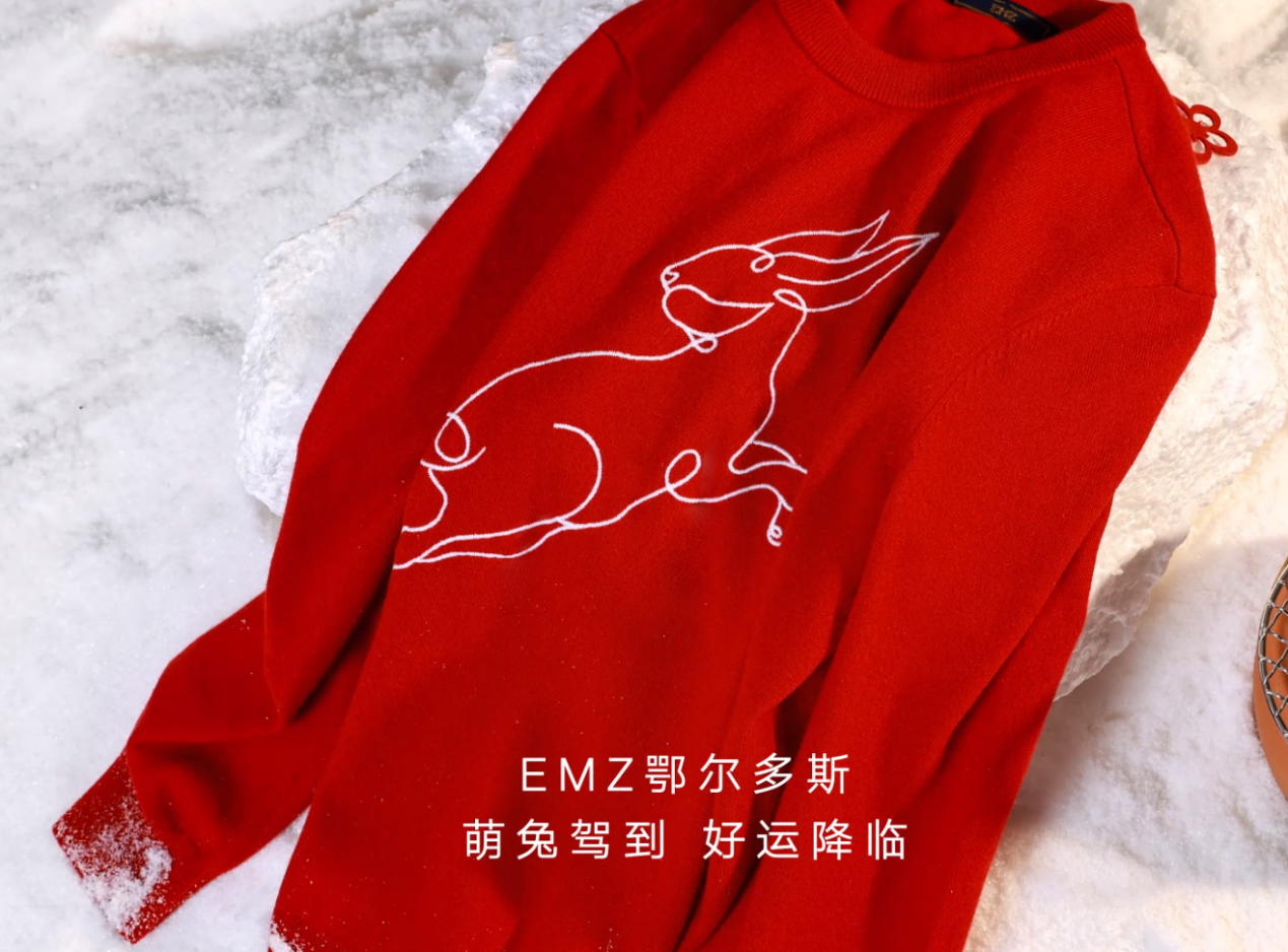 EMZ鄂尔多斯,鄂尔多斯集团旗下男装品牌,沉稳、精制、精心简形,将高品质服饰融入精英人群穿着日常。在癸卯兔年来临之际,以生肖兔为灵感来源,隆重推出生肖款毛衫,迎接福年,一起“兔”个吉祥,“兔”个财运亨通。