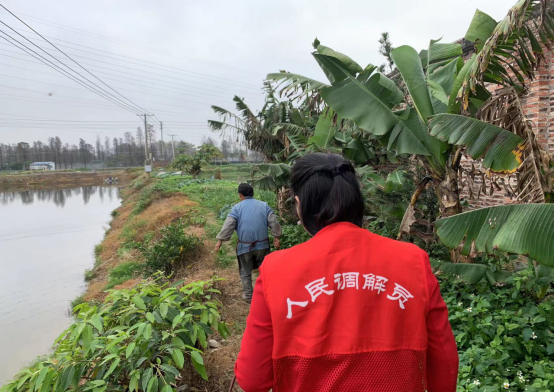 调解员走访田间地头,排查苗头性矛盾纠纷,积极回应群众诉求