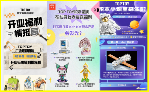 从过往门店的开业动作及效果反馈中汲取经验,TOP TOY此次从试营业阶段开始提前蓄水,通过多维度年轻化创意营销,结合高效的线上+线下联动体系,以精细化运营动作为门店的正式开业铺垫。