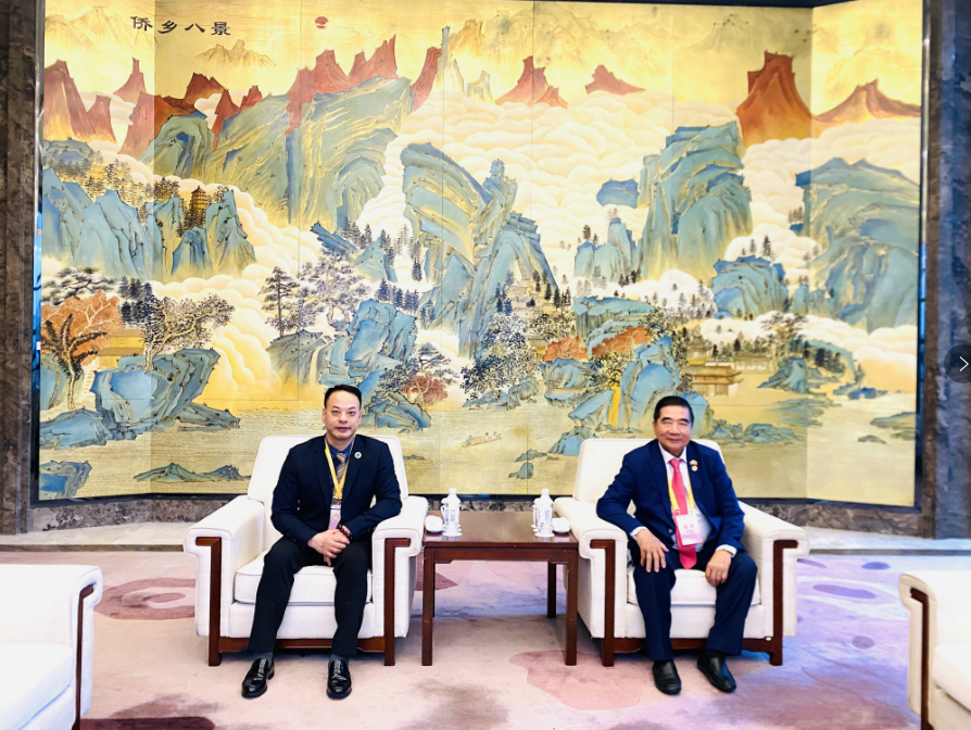 会上,全球华人联合总商会执行主席方振龙先生与柬埔寨王国勋爵、总理助理、三军总司令顾问、三星将军、柬华理事总会常务副会长方灿成先生亲切交谈。
