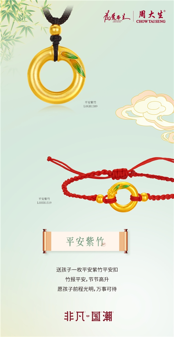 在这个人生的十字路口不管是谁都希望迎来转折,走向更美好的未来。周大生珠宝非凡国潮系列“平安紫竹”,寓意竹报平安,节节高升,为高考幸运加持。祈盼莘莘学子门门高分,心想事成。