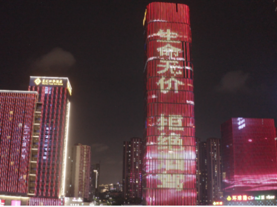 线下,在佛山市户外大型地标建筑组织开展灯光秀,“点亮”预防酒驾专题宣传标语,将“生命无价,拒绝酒驾”等标语在大型地标建筑滚动播放,营造浓厚的预防酒驾专项法治宣传活动氛围。
