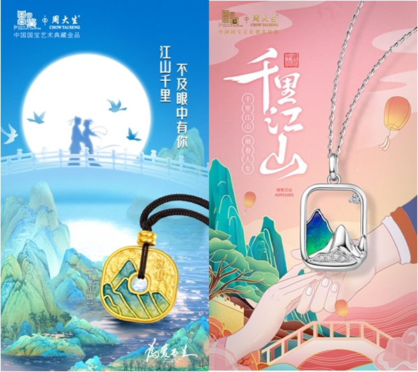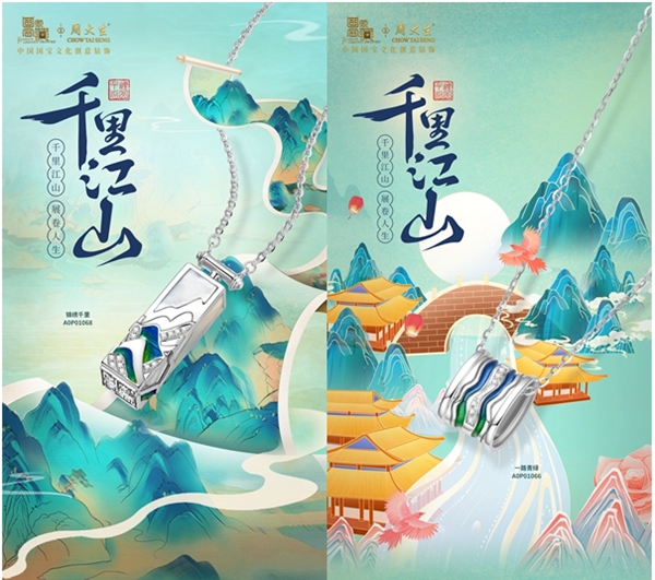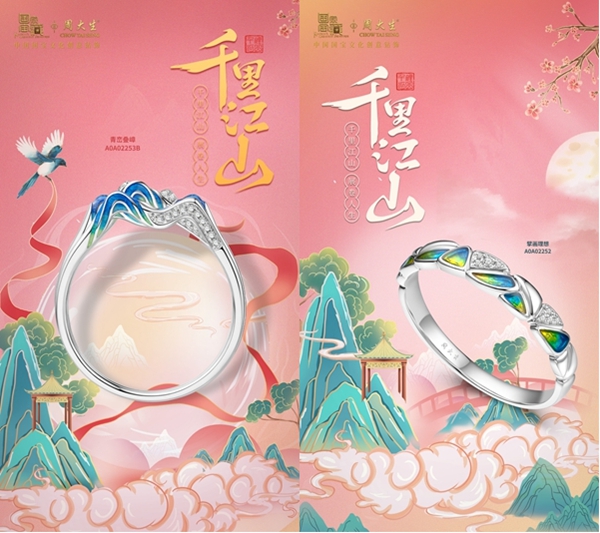 周大生珠宝为满足消费者的不同消费需求,坚持“黄金为主力产品,钻石为优势产品”的产品定位。此次七夕国家宝藏联名款,不仅推出了中国国宝艺术典藏金品——千里江山系列黄金产品,还推出了中国国宝文化钻饰——同样源于《千里江山图》的绘色江山钻石镶嵌产品。两种完全不同的产品类型,在造型设计上生动惊艳,各有特点,又都承载着国家宝藏《千里江山图》的深切情感,为消费者在满足情感需求的同时提供了更多的消费选择。
