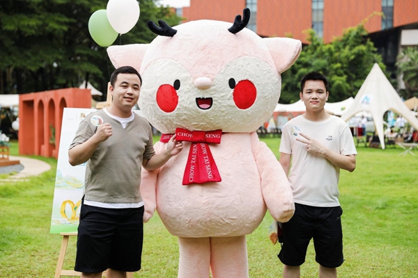 以蓝天为幕,以草地枕息,伴着徐徐晚风,双方会员纷纷到场签到打卡。周大生会员福利官小龙更是亲临现场,热烈地欢迎会员们到场,小龙软萌的造型十分吸睛,引来一众人的拍照打卡。