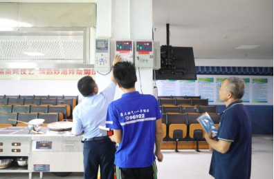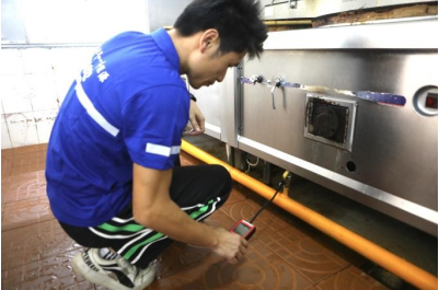 燃气公司安检人员在立才学校、欧亚技工学校等学校的食堂厨房、气瓶间,重点对燃气使用环境、燃气器具是否带有熄火保护装置、燃气灶具连接管是否正常、燃气减压阀、燃气报警器等进行隐患排查,并通过可燃气体探测仪检测燃气管线等燃气设备是否存在漏点、锈蚀等隐患。