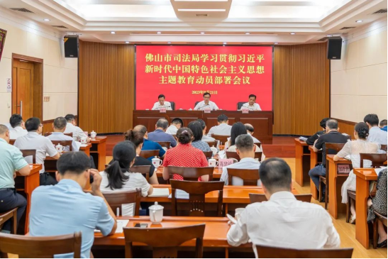 近日,佛山市司法局召开学习贯彻习近平新时代中国特色社会主义思想主题教育动员部署会,深入学习贯彻习近平总书记关于主题教育的系列重要讲话精神,认真落实中央对第二批主题教育的决策部署及省委、市委工作安排,对市直司法行政系统开展主题教育进行动员部署。局机关全体党员干部参加会议。市委主题教育办联络三组成员出席会议。