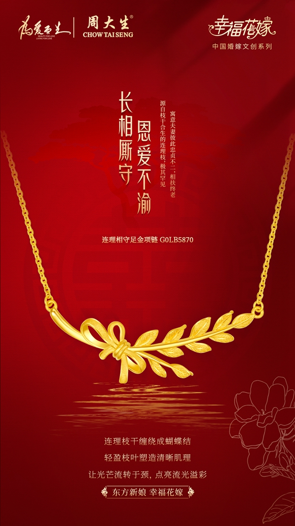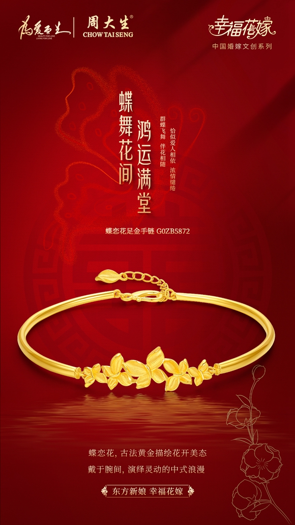 周大生乘国潮之风,扬东方婚嫁之采,幸福花嫁与国家宝藏系列婚嫁珠宝与国潮元素充分融合,外在新颖时尚,内在寓意丰满,为当代年轻人送上称心如意的婚嫁珠宝,满足他们的精神文化需求,掀起国潮婚嫁珠宝新风尚。希望周大生在未来能打造更多颇具个性的国潮珠宝,为年轻消费者送上更好的产品,推动珠宝行业的高质量发展。