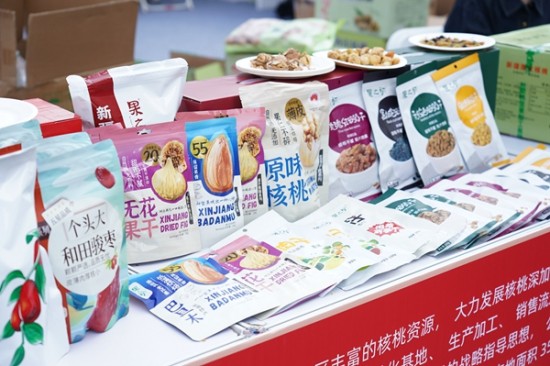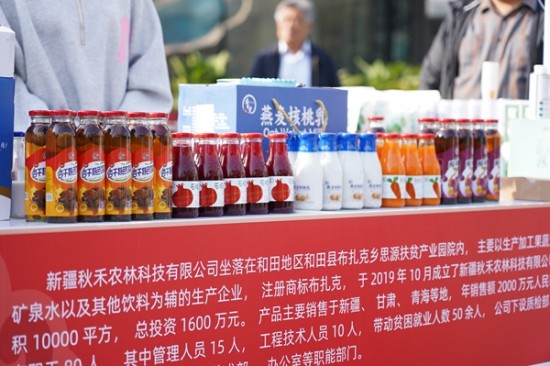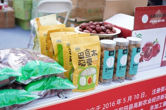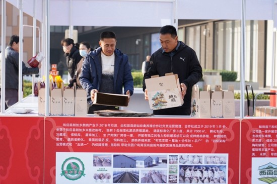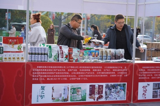 此次活动,和田县借助与北京市大兴区对口支援协作的优势,打造现场展示、实体销售与线上直播、营销宣传相结合的推介模式,拓宽和田县特色农副产品的销售渠道。现场有花样繁多的农副产品,有最为大众所熟知的红枣等蔬果干货类,也有如鹧鸪蛋、香菇酱这种小众产品。