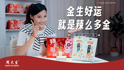 10月12日至10月19日,两大国民品牌周大生珠宝和卫龙,巧妙的以“龙”为核心关联点,开展【金生好运 就是辣么多金】联名活动:以一支【点食成金】的趣味短片引出First系列果冻龙产品隆重亮相,并共同推出【辣么多金】礼盒等产品周边,聚焦Z世代成功打响品牌声量。