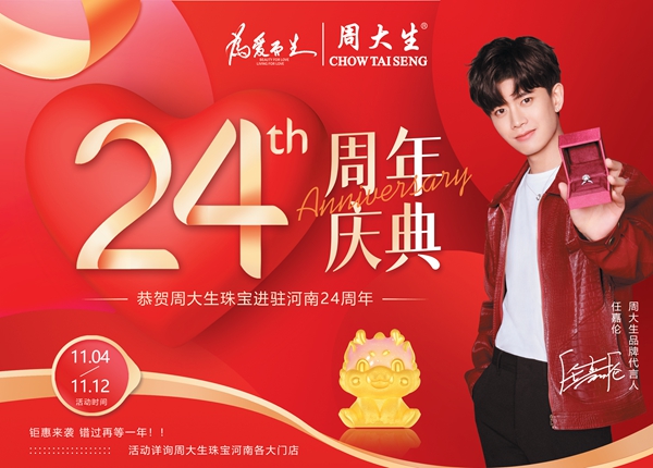 时光荏苒,岁月如梭,从1999年至今,周大生入驻河南已有24年,24年来始终深耕不辍,因地制宜为当地消费者提供特色产品与本土化服务,规模也不断壮大,由最初的一家门店发展至今已突破400 家。24周年之际,周大生(河南)于11月4日-11月12日期间,在河南400+门店推出了黄金超值克减、镶嵌钜惠折扣等众多福利惊喜与系列国潮爆款新品,感恩回馈广大消费者多年的信任与陪伴。