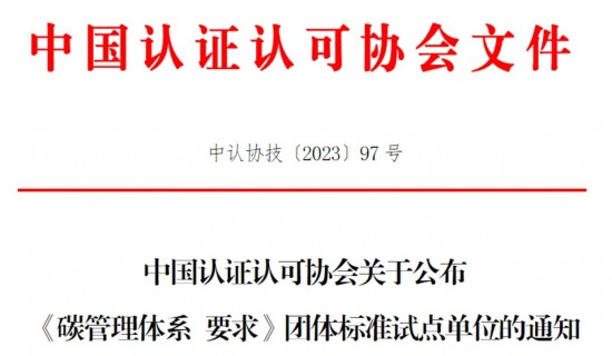11月15日,中国认证认可协会(简称“CCAA”)公布《碳管理体系 要求》团体标准试点单位的通知,挪亚成功入选标准推广应用试点认证单位名单。