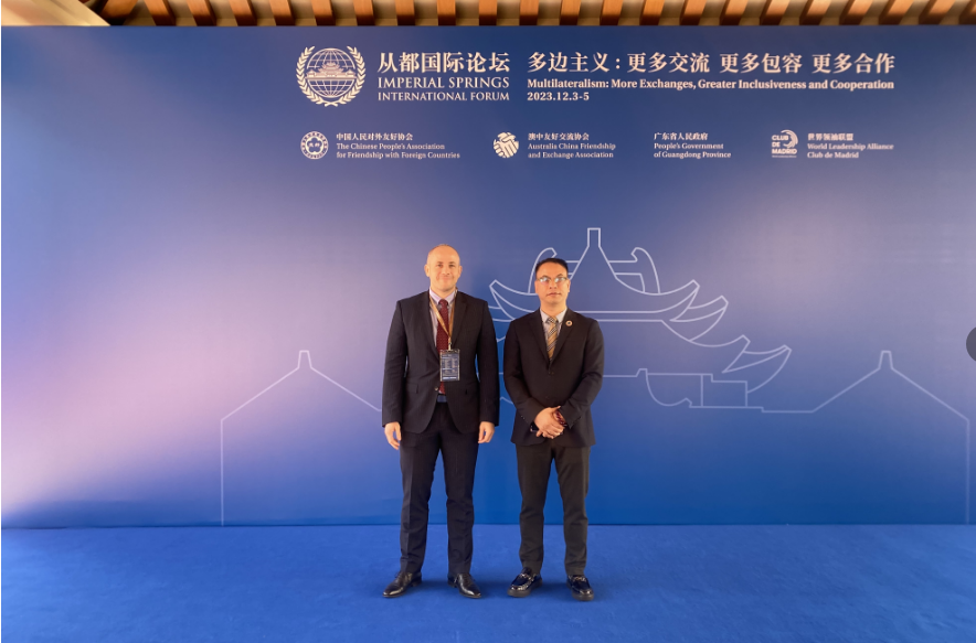12月4日全球华人联合总商会執行主席方振龍、廣州代表處副代表周志偉應邀出席"2023從都國際論壇"。全球华人联合总商会热烈祝贺“2023从都国际论坛"在广州从都囯际庄园胜利召开。自2013年起,“读懂中国”从都国际论坛至今已走过了十个年头,成功架起中外沟通之桥,已成为世界了解中国发展战略最具影响力的平台之一。