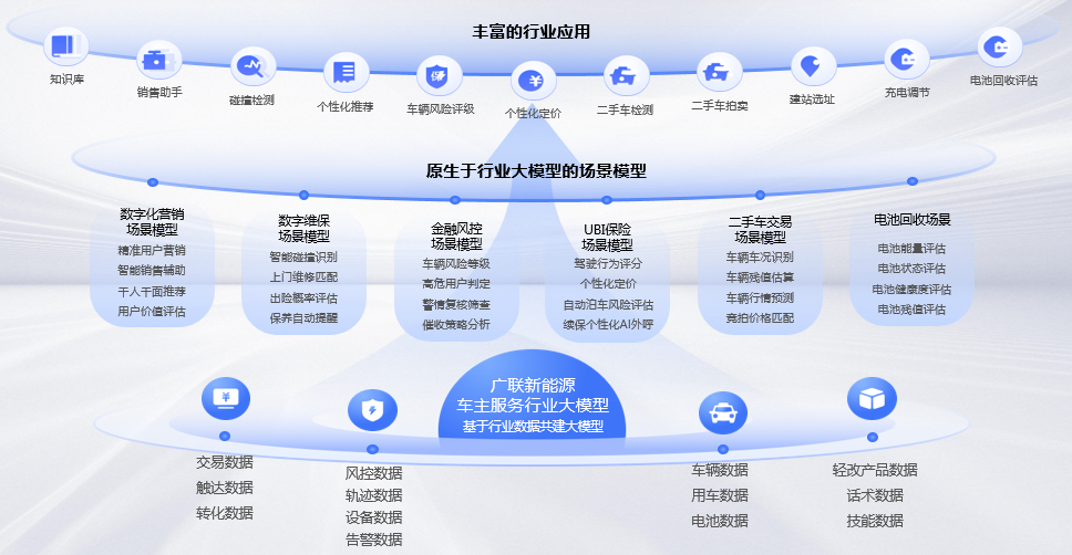 此外,广联数科基于新能源汽车工业后端大模型数据支撑平台的研发,构建了新能源车主服务行业大模型,实现了在新能源车交付中心的数字化精准营销服务、面向新能源车主的数字化智能维保服务、面向汽车融资租赁公司的精准车辆风控服务、UBI保险服务,以及新能源二手车透明交易服务等