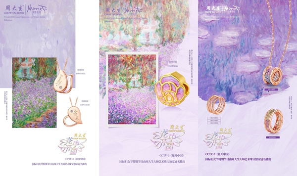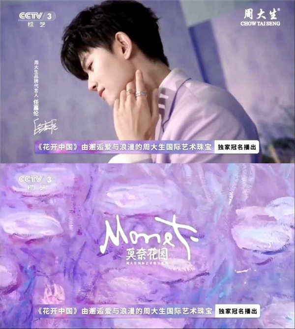 此次冠名是周大生继近期独家冠名了CCTV3《向幸福出发》以及独家赞助《国家宝藏精编版》节目之后,以大师艺术珠宝系列独家冠名了妇女节特别节目《花开中国》,具有特别的意义。周大生大师艺术珠宝·莫奈花园系列与《花开中国》节目拥有极高的契合度。花之于女性就如同一对双生子,花拥有的美好特质与多姿的女性形象互为表里、相辅相成,如同莫奈花园里各色各样恣意绽放的花,各有千姿,各有馥郁芬芳,绽放着不被定义的光芒。莫奈花园系列注重当代女性的情感需求和个性表达,以珠宝为载体将莫奈花园的花卉生动呈现,展示女性的多面可能与无限魅力,和《花开中国》节目里新时代的女性力量一样,以自信、坚韧、优雅、洒脱的生命力在人世间自由绽放。