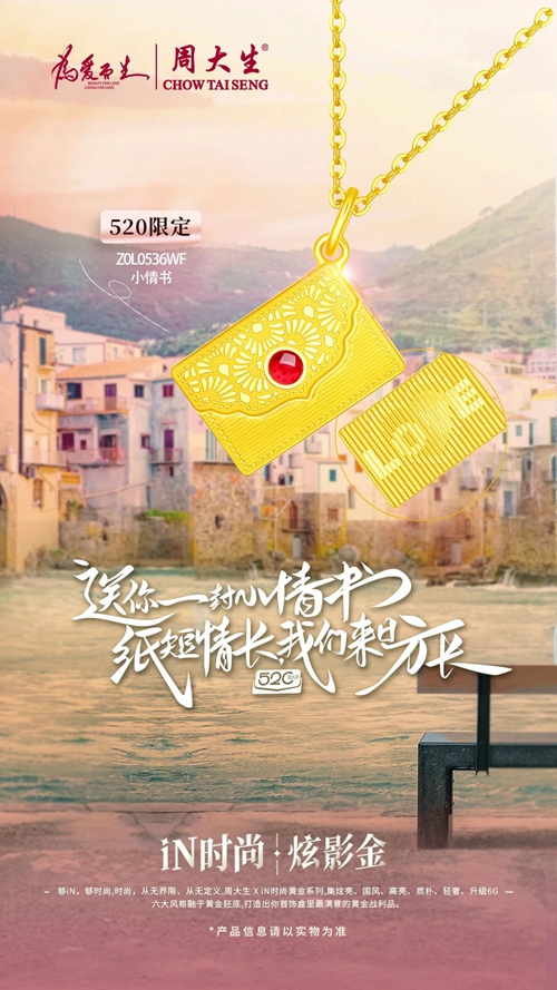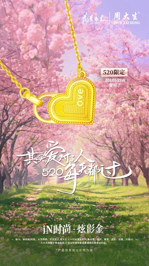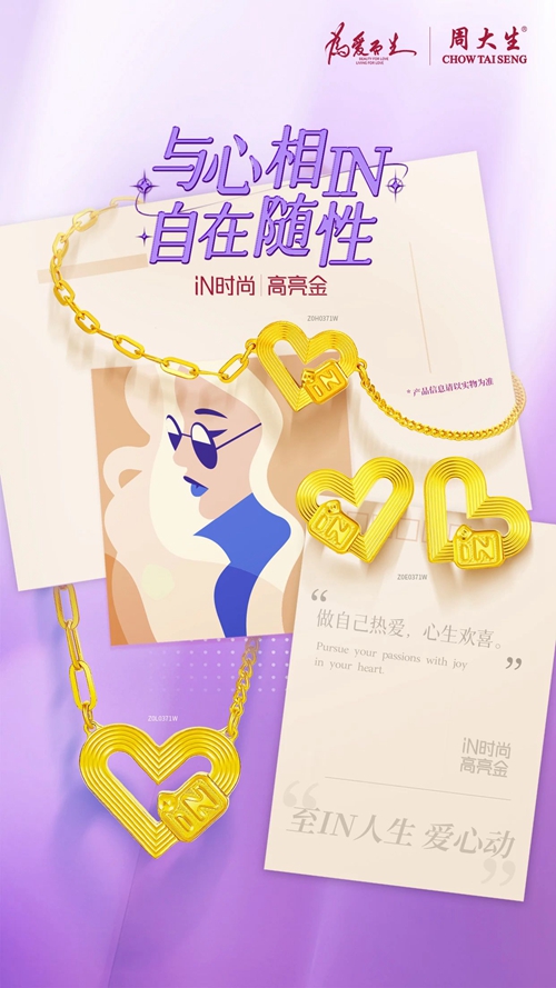 生活需要充满仪式感的日子,为平淡的生活,增添更多爱自己的理由,记住爱与被爱的感觉。520,正是这样一个仪式感十足的节日,在这爱意满满的时刻,人们可以尽情奔赴热爱,不论是约会、聚会还是独自一人,都可以精致打扮,取悦自己,享受生活。520期间,“为爱而生”周大生iN时尚黄金产品系列,推出不同风格类型系列产品,为人们的520穿搭提供多种选择,让人们在不同场景下尽情演绎浪漫,表达爱!