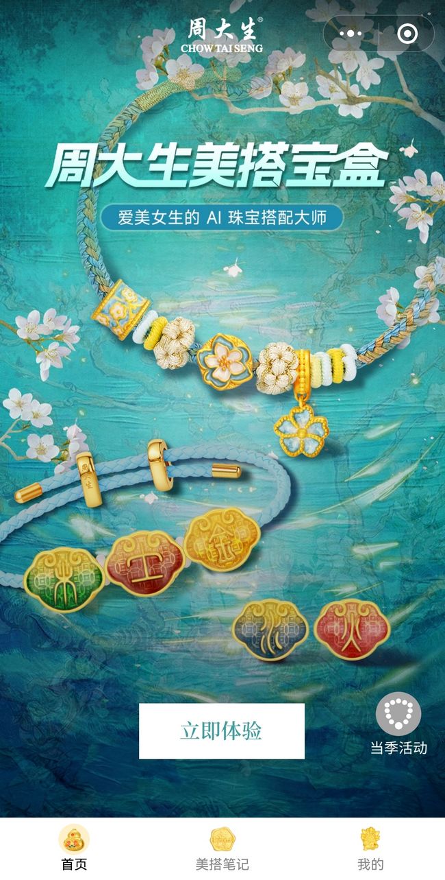 周大生经典腕美季点亮时尚穿搭,更有精彩活动玩转清凉一夏。基于AI算法的黑科技——周大生美搭宝盒小程序今夏闪耀上线,进入小程序首页并注册周大生会员方可体验不同形式的美搭搭配。AI技术解析运势即可推荐适配的串珠产品,此外还可根据个人喜好挑选艺术色系,DIY手绳及串珠搭配。更有AI换脸黑科技体验一键试戴,生成海报后转发分享便可参与抽奖,将有机会赢得钻石手链、黄金串珠盲盒、香氛礼盒等好礼,点燃夏日热情。