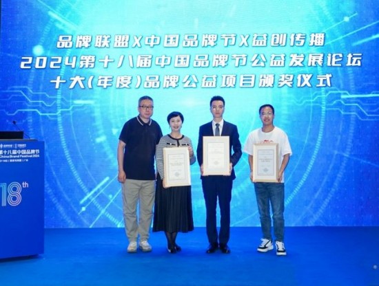李锦记希望厨师项目荣获首届“2024中国品牌节十大(年度)品牌公益项目”,李锦记中国企业事务总监(左二)上台接受荣誉