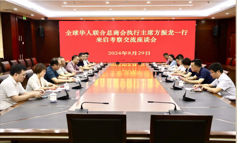 应启东市工商联邀请,8 月 29 日—8 月 30 日,全球华人联合总商会执行主席方振龙一行 8 人到启东市进行考察交流。