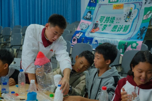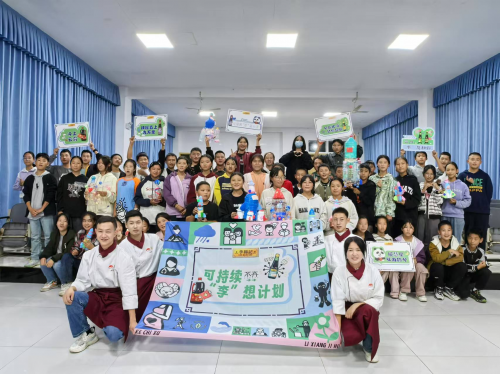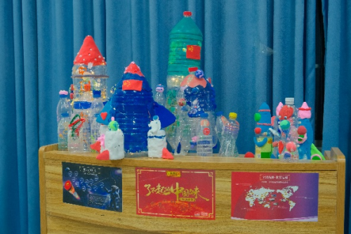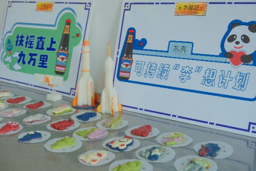 图:李锦记希望厨师与“珍珠生”协力用废弃塑料瓶制作航天主题环创