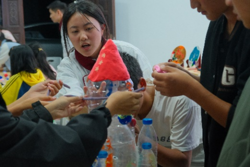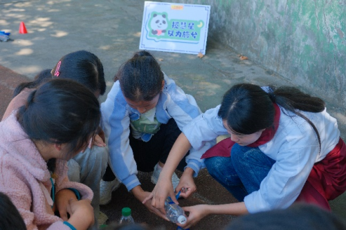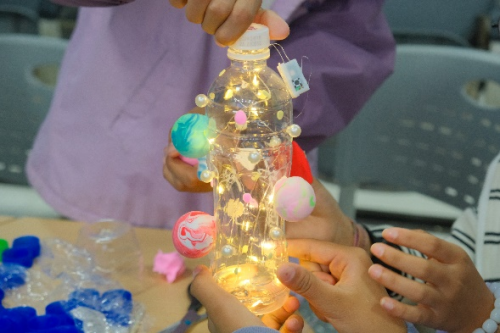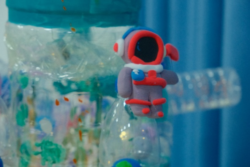 不同于可持续“李”想计划之前活动中改造李锦记废弃酱料玻璃瓶,这一次环创的物料均来自于9月李锦记希望厨师成都班开班仪式回收的矿泉水瓶、希望厨师平时用完的饮料瓶——在不弃升级再造中心设计师欧佳鹏和田星星的技术指导下,李锦记希望厨师与川兴中学50名 “珍珠生”们耗时1小时,共同完成了十余个航天环创装置。