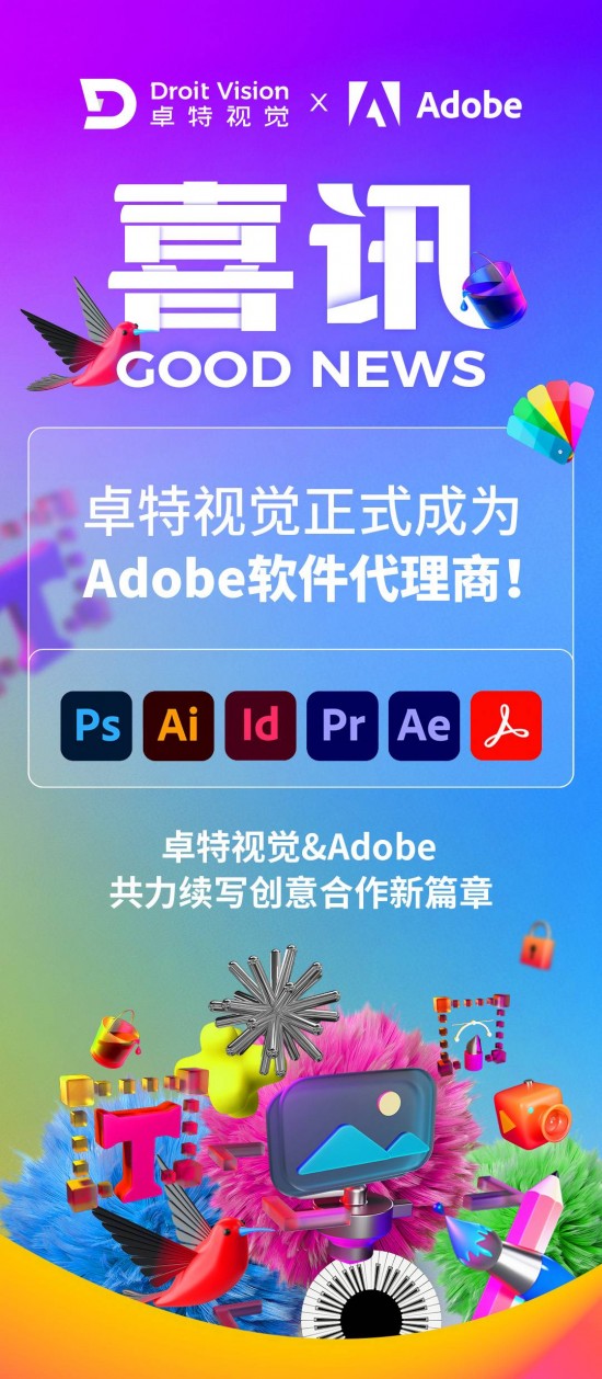 2024年11月,卓特视觉作为Adobe Stock中国区官方合作伙伴,与Adobe继续开展深度合作,再次取得Adobe软件代理资质,正式为Adobe软件代理商。这也标志着卓特视觉与Adobe之间长期且富有成效的合作关系进入新的阶段。同时,双方的进一步合作,也将为国内创意工作者带来更加便捷、高效的工作体验。