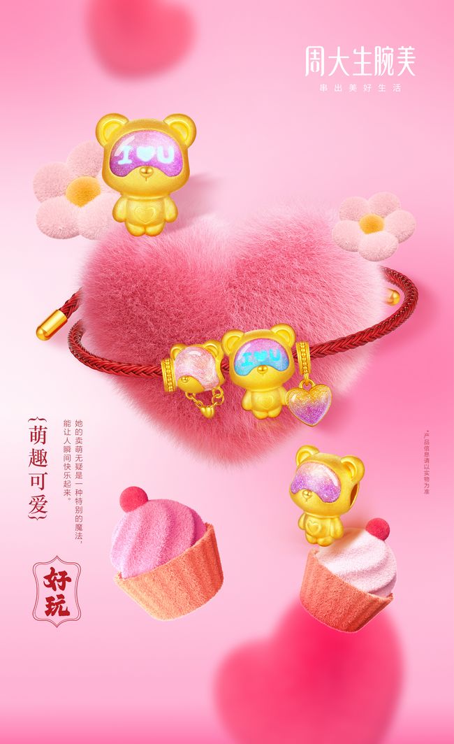“周大生腕美”系列以三大设计风格为核心,分别是“时尚艺术风格”、“萌趣可爱风格”和“国风国潮风格”。每种风格都经过精心设计,以满足不同年轻消费者的需求。