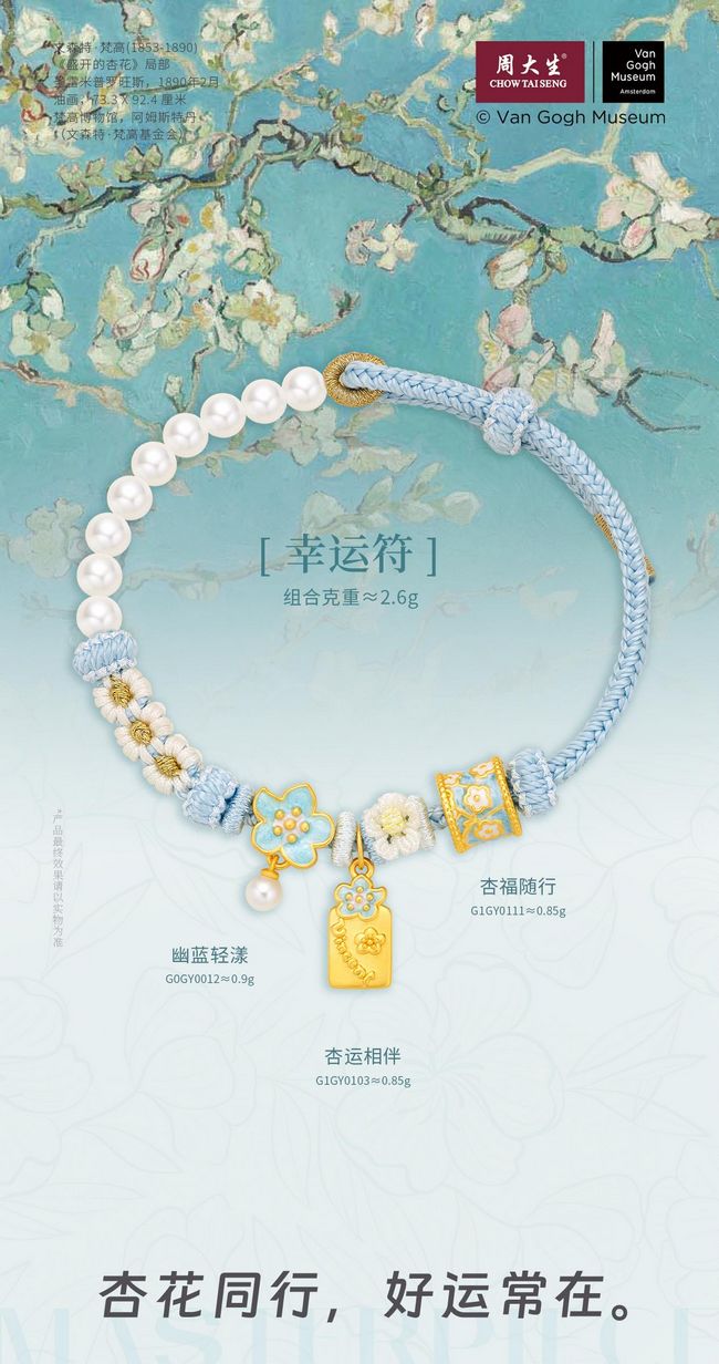 周大生大师艺术珠宝·炽热梵高系列在年末之际,以杏花为载体传递“杏”运能量,让“杏”福如影随形,为新的一年注入一抹缤纷色彩,用温暖人心的力量打开新年新气象。