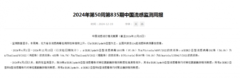 流感是由流感病毒引起的一种急性呼吸道传染病。流感病毒可以分为甲(A)、乙(B)、丙(C)、丁(D)四个型别,其中的甲型(H1N1亚型和H3N2亚型)和乙型流感病毒会导致每年的季节性流行。中国疾病预防控制中心于12月19日发布的第50周中国流感监测周报显示,本周南、北方省份流感病毒检测阳性率继续上升,而引起流感的主要毒株正是属于甲型的A(H1N1)pdm09亚型。