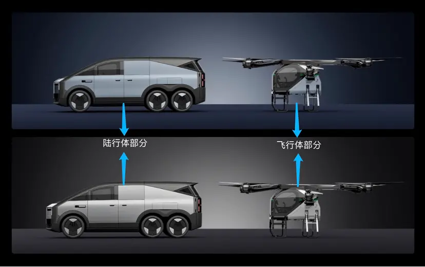 图|小鹏汇天的分体式汽车,由陆行体+飞行体2个部分组成