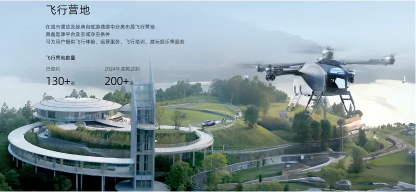 此外,小鹏汇天将利用现有资源,包括全国近1000座通用机场、飞行营地,可执行直升机飞行的180多个5A级景区,同时联合全国合作伙伴,完成超200个飞行营地的布局,打造“陆地航母”飞行场景的“样板间”。