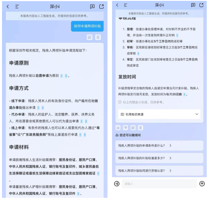 当深圳的周先生(化名)向智能客服“深小i”询问“如何申请两项补贴”时,他得到的不仅是政策解读,更有手把手办事指引。AI助手像“私人顾问”一样,主动识别需求,提供精准支持。