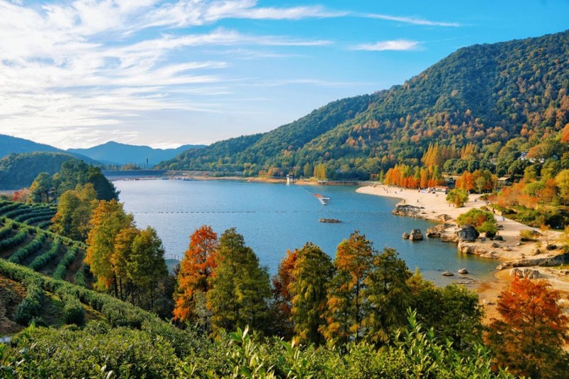 初冬,漫山遍野的秋色妆点了金华山,也勾勒出了一年中最美的鹿女湖神韵,橙黄橘绿间,湖光山色相映,五彩斑斓美如仙境。