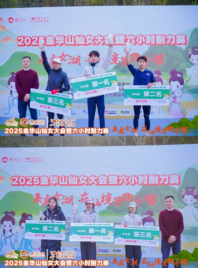 半马组男子组冠军伍立强用时01:11:47、亚军贾肇炜用时01:11:59、季军羊小军用时01:12:22;半马组女子组冠军裘静娟用时01:26:38、亚军施雨彤用时01:29:47、季军付丽艳用时01:30:44。